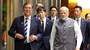 प्रधानमंत्री मोदी अपनी यात्रा के पहले दिन टोक्यो में जापान के प्रधानमंत्री शिगेरू इशिबा के साथ संयुक्त प्रेस वक्तव्य के दौरान बोलते हुए